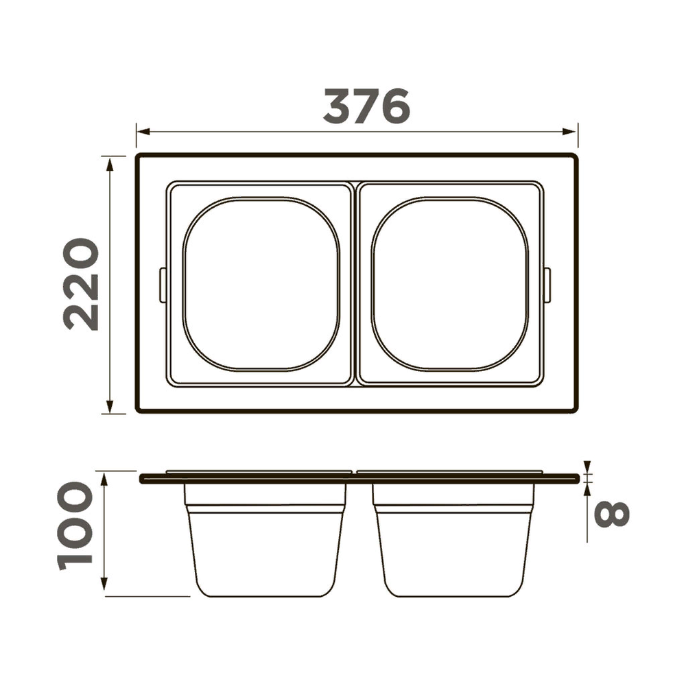 контейнер, 376х220 мм, нержавеющая сталь
