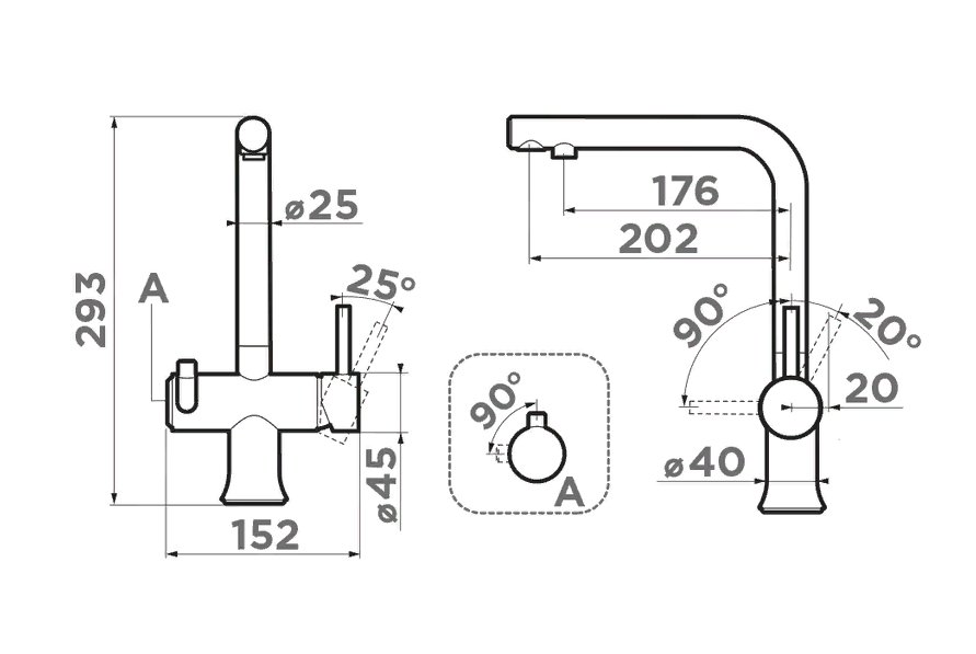 смеситель для кухни, латунь, дополнительный излив для фильтрованной воды, графит