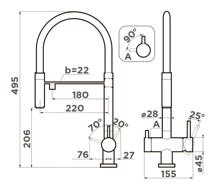 смеситель для кухни, латунь, дополнительный излив для фильтрованной воды, синий матовый