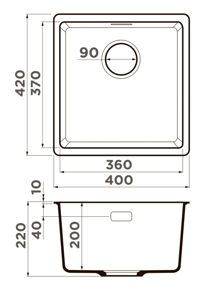 Расстояние от дна до верхней кромки чаши мойки. Оптимальная глубина — 15-18 см. Чем глубже мойка, тем меньше брызг попадет наружу.