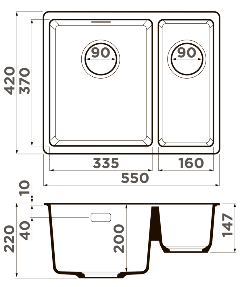 Расстояние от дна до верхней кромки чаши мойки. Оптимальная глубина — 15-18 см. Чем глубже мойка, тем меньше брызг попадет наружу.