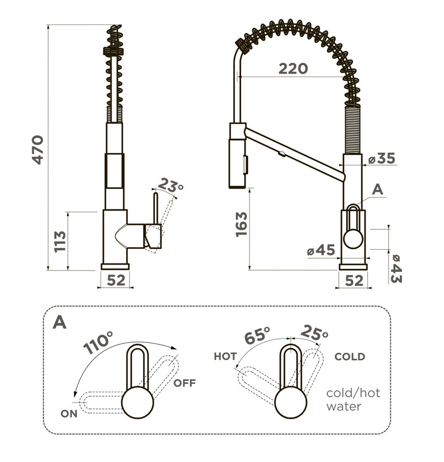 Omoikiri Mikawa 2 Plus-SB-BN, смеситель, нержавеющая сталь