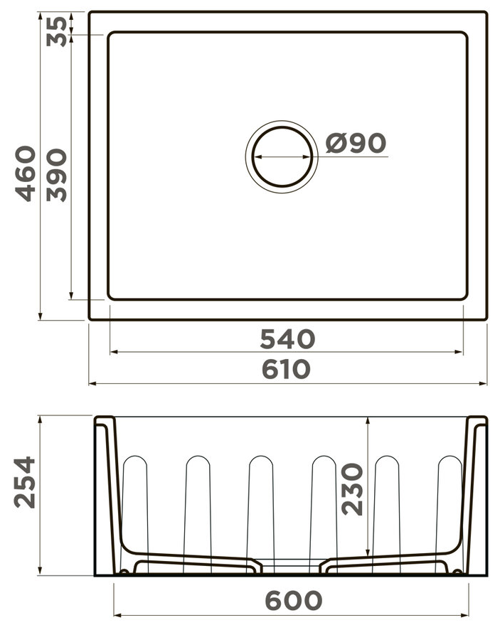 Расстояние от дна до верхней кромки чаши мойки. Оптимальная глубина — 15-18 см. Чем глубже мойка, тем меньше брызг попадет наружу.