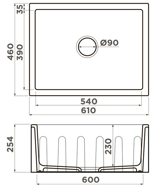 Расстояние от дна до верхней кромки чаши мойки. Оптимальная глубина — 15-18 см. Чем глубже мойка, тем меньше брызг попадет наружу.