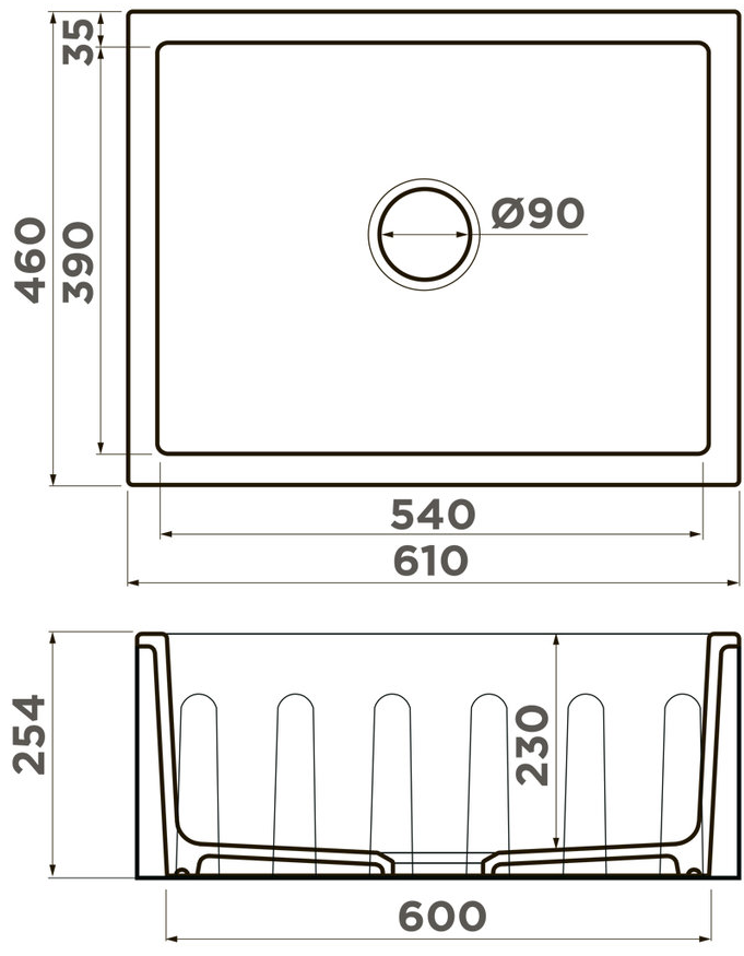 Расстояние от дна до верхней кромки чаши мойки. Оптимальная глубина — 15-18 см. Чем глубже мойка, тем меньше брызг попадет наружу.
