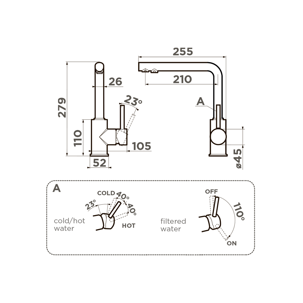смеситель для кухни, латунь, дополнительный излив для фильтрованной воды, espresso