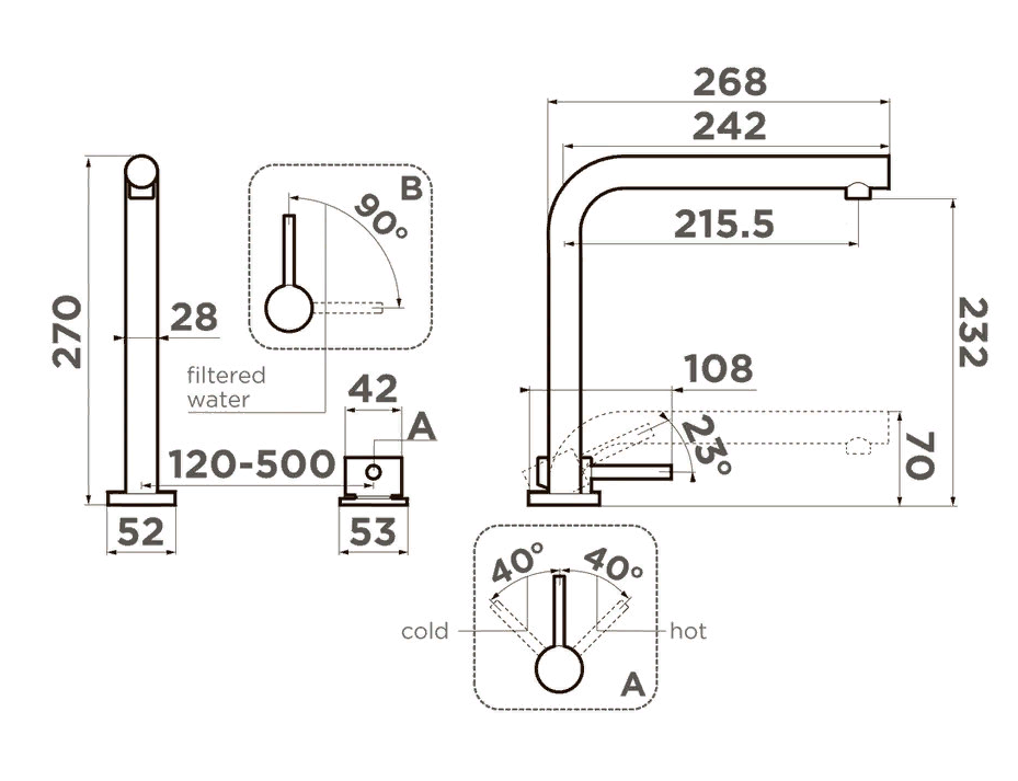смеситель для кухни, латунь, дополнительный излив для фильтрованной воды, нержавеющая сталь