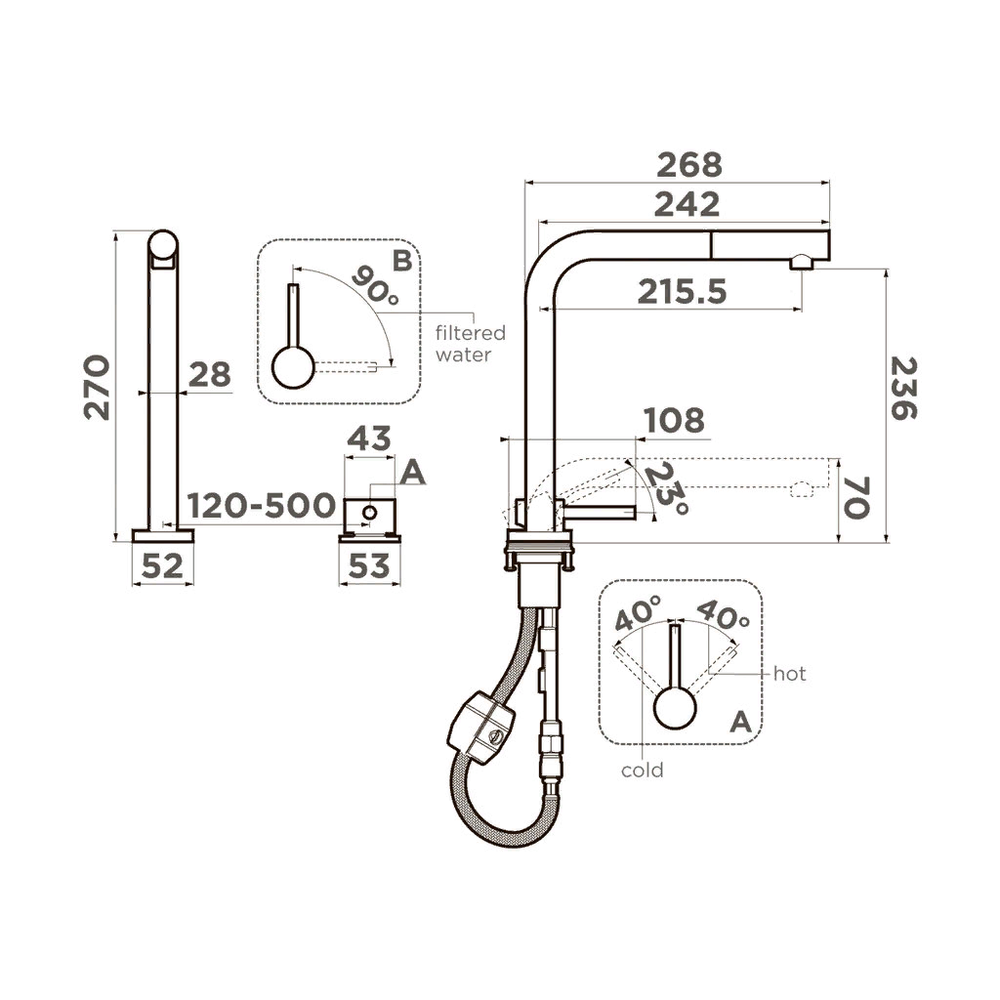 смеситель для кухни, латунь, дополнительный излив для фильтрованной воды, графит