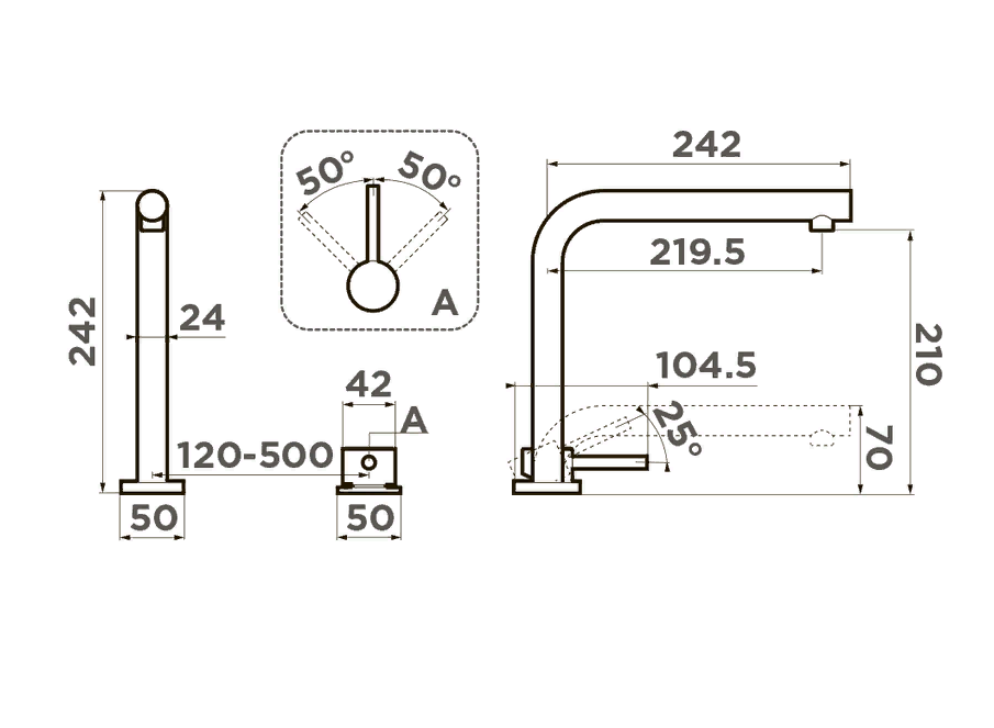 смеситель для кухни, латунь, высокий поворотный излив, графит
