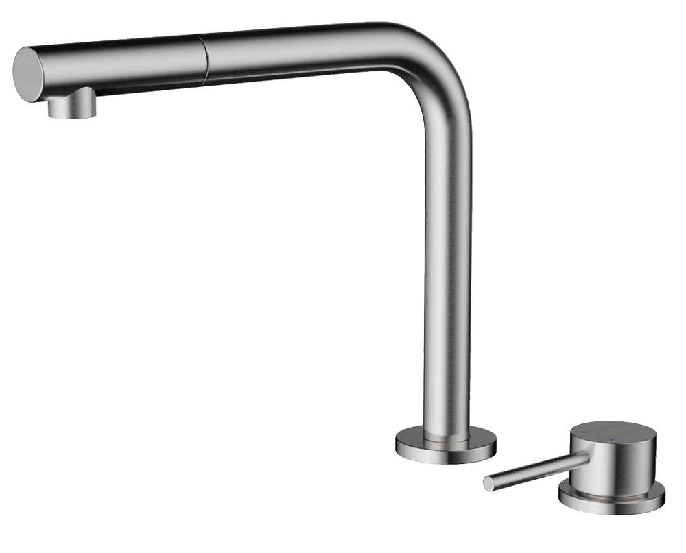 смеситель для кухни, латунь, высокий поворотный выдвижной излив, нержавеющая сталь