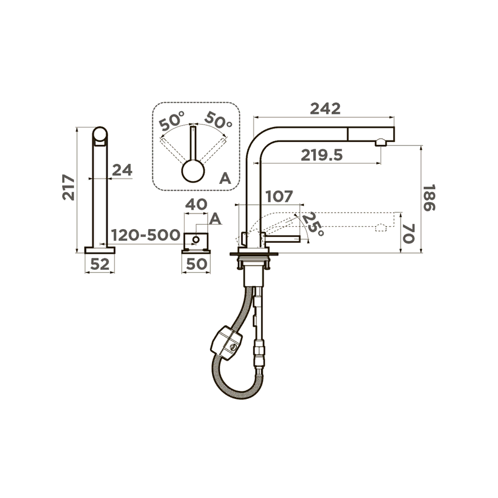 смеситель для кухни, латунь, высокий поворотный выдвижной излив, хром