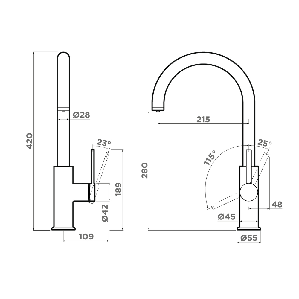 Omoikiri Okawa 2 Plus-GM, смеситель, нержавеющая сталь, вороненая сталь Смеситель «под гранит»