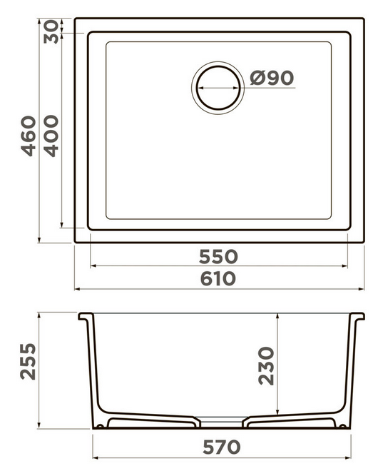 Расстояние от дна до верхней кромки чаши мойки. Оптимальная глубина — 15-18 см. Чем глубже мойка, тем меньше брызг попадет наружу.