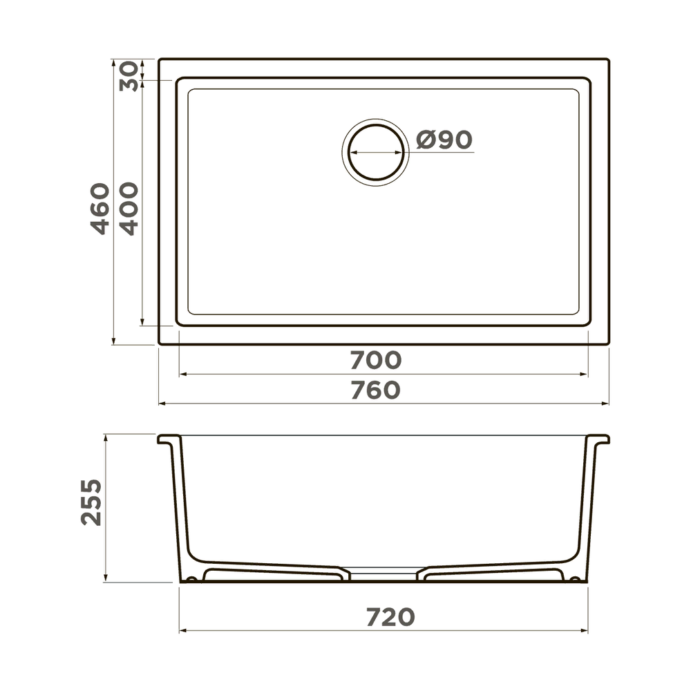 Расстояние от дна до верхней кромки чаши мойки. Оптимальная глубина — 15-18 см. Чем глубже мойка, тем меньше брызг попадет наружу.