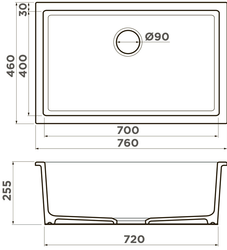 Расстояние от дна до верхней кромки чаши мойки. Оптимальная глубина — 15-18 см. Чем глубже мойка, тем меньше брызг попадет наружу.