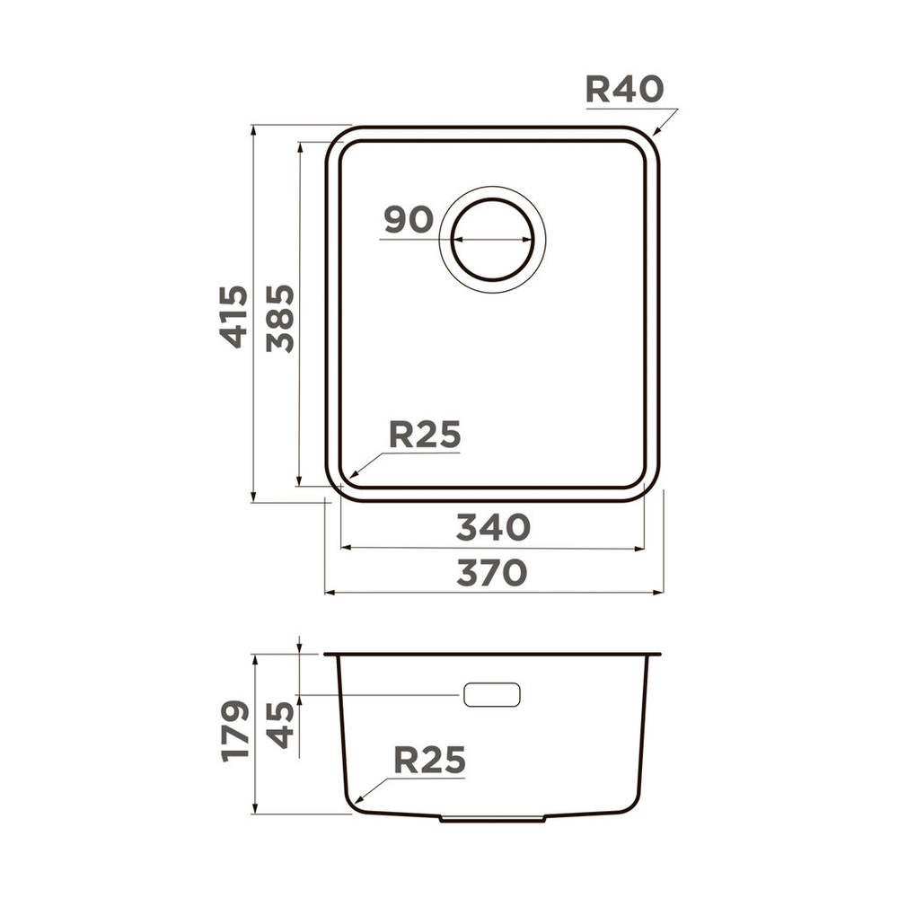 мойка, нержавеющая сталь, 370х415 мм, графит