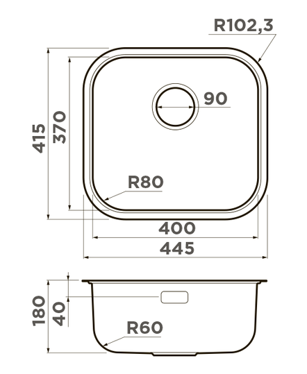 Расстояние от дна до верхней кромки чаши мойки. Оптимальная глубина — 15-18 см. Чем глубже мойка, тем меньше брызг попадет наружу.