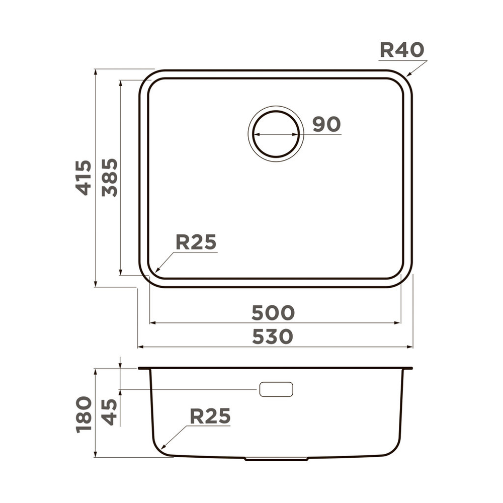 мойка, нержавеющая сталь, 530х415 мм, нержавеющая сталь