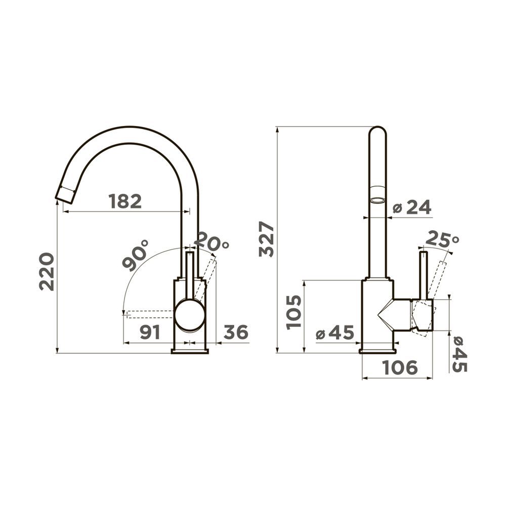 смеситель для кухни, латунь, высокий поворотный излив, espresso