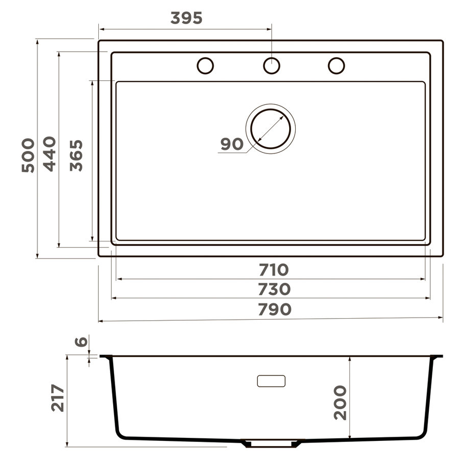 Расстояние от дна до верхней кромки чаши мойки. Оптимальная глубина — 15-18 см. Чем глубже мойка, тем меньше брызг попадет наружу.
