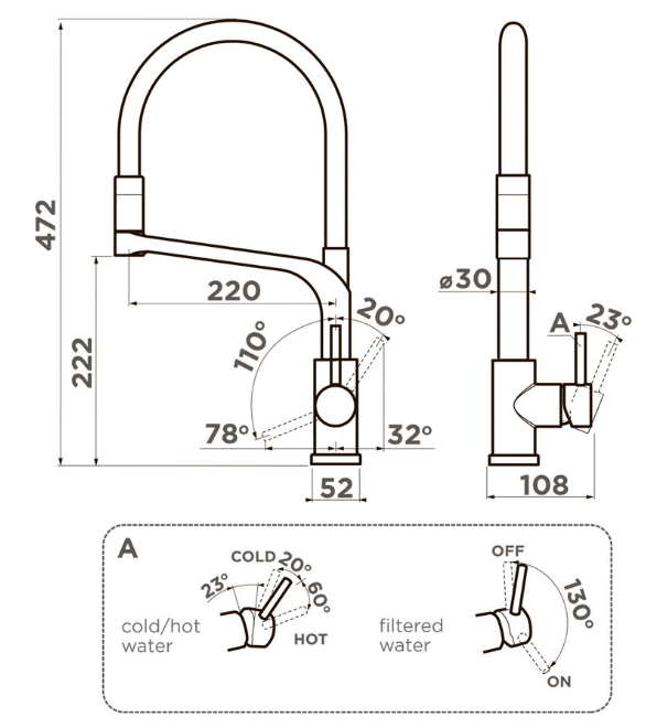 смеситель для кухни, латунь, дополнительный излив для фильтрованной воды, хром/белый
