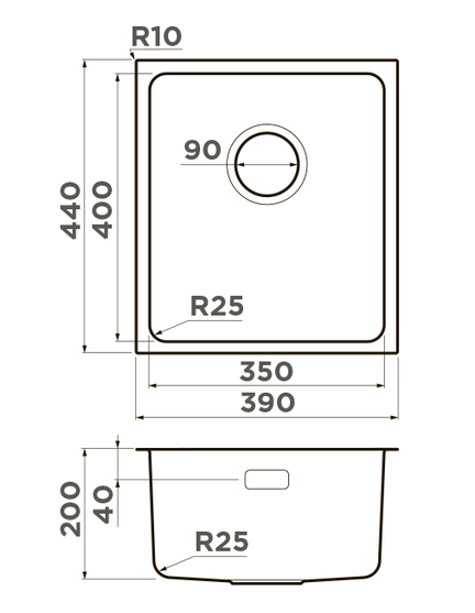мойка, нержавеющая сталь, 390x440 мм, светлое золото