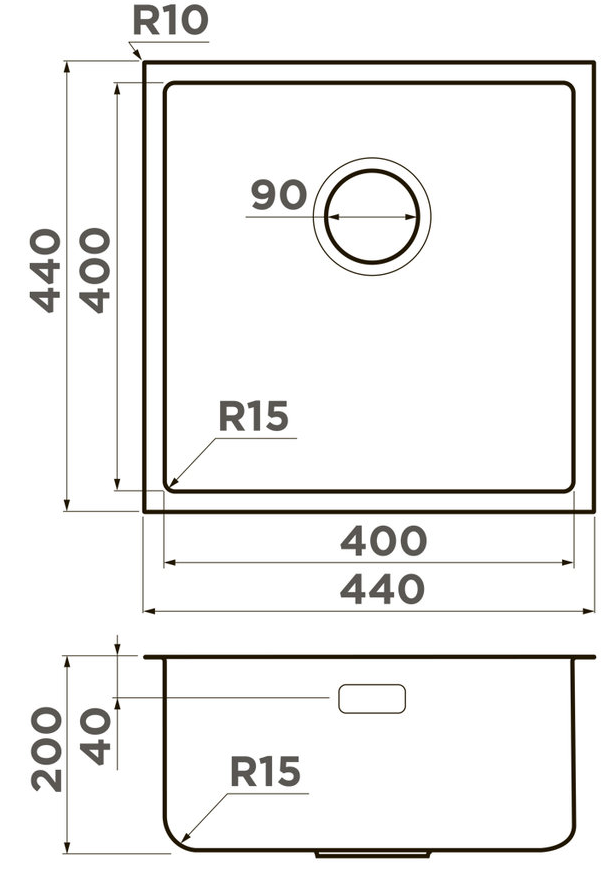 мойка, нержавеющая сталь, 440x440 мм, нержавеющая сталь