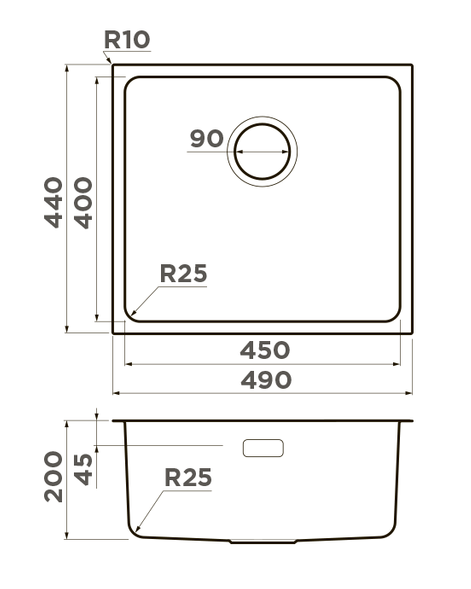 мойка, нержавеющая сталь, 490x440 мм, светлое золото