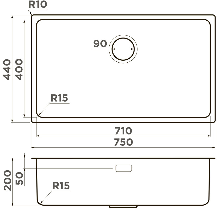 мойка, нержавеющая сталь, 750х440 мм, нержавеющая сталь