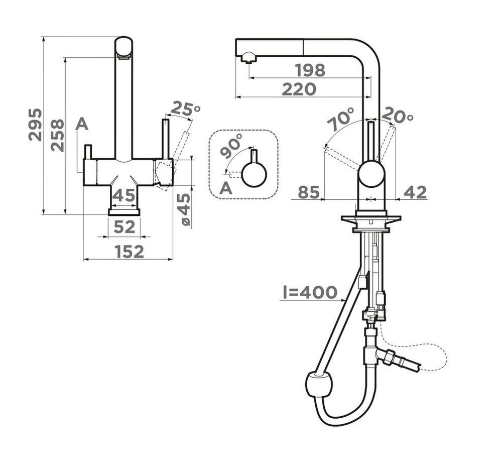 смеситель для кухни, латунь, дополнительный излив для фильтрованной воды, чистый белый