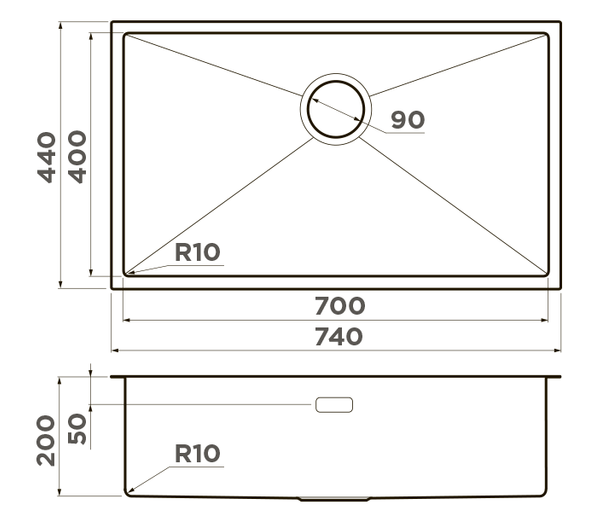 мойка, нержавеющая сталь, 740х440 мм, графит