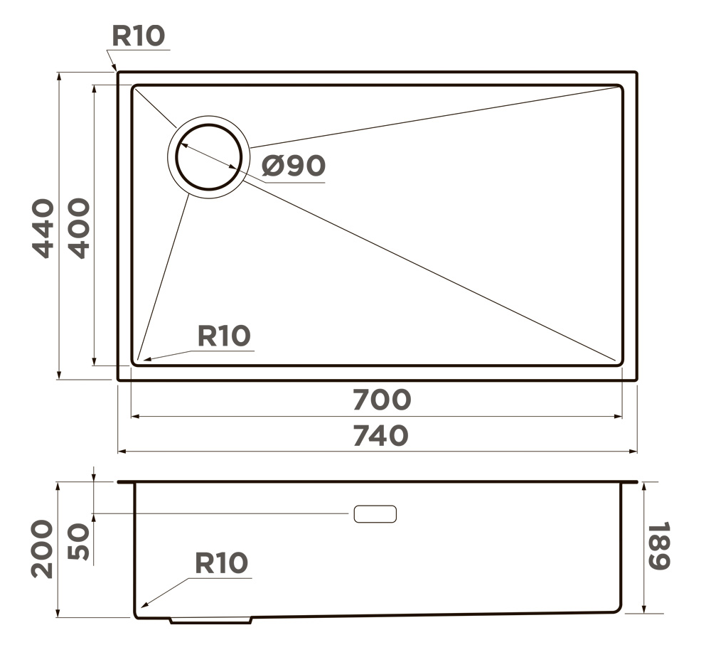 мойка, нержавеющая сталь, 740х440 мм, нержавеющая сталь