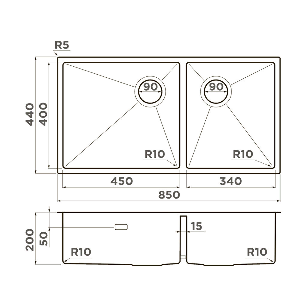 мойка, нержавеющая сталь, 850х440 мм, нержавеющая сталь