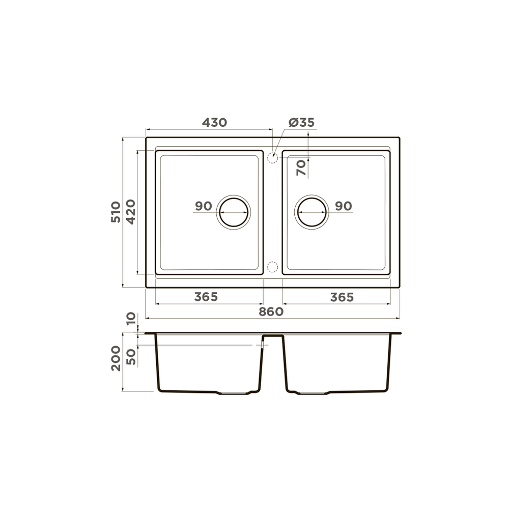 Расстояние от дна до верхней кромки чаши мойки. Оптимальная глубина — 15-18 см. Чем глубже мойка, тем меньше брызг попадет наружу.