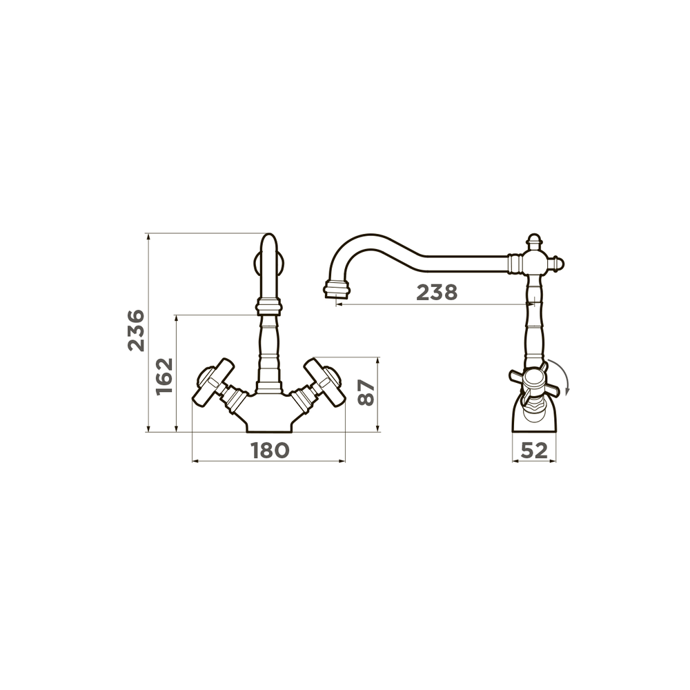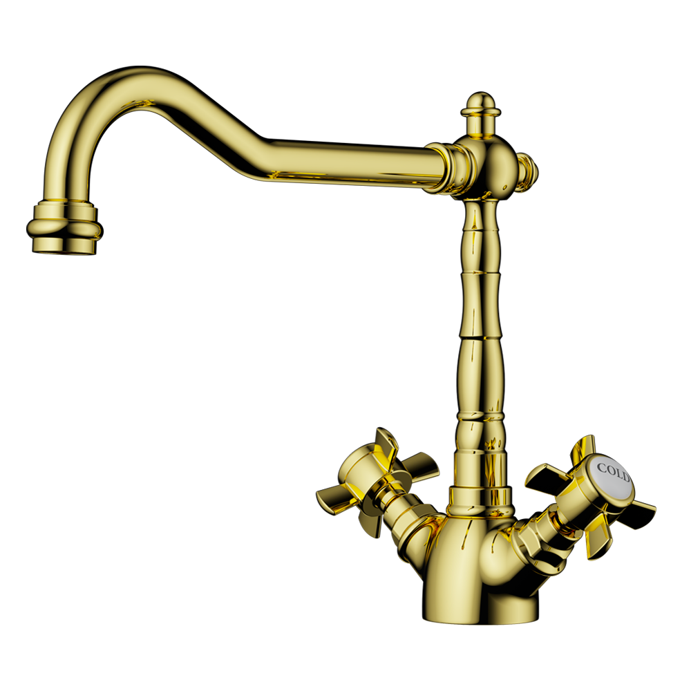 смеситель для кухни, латунь, высокий поворотный излив, золото
