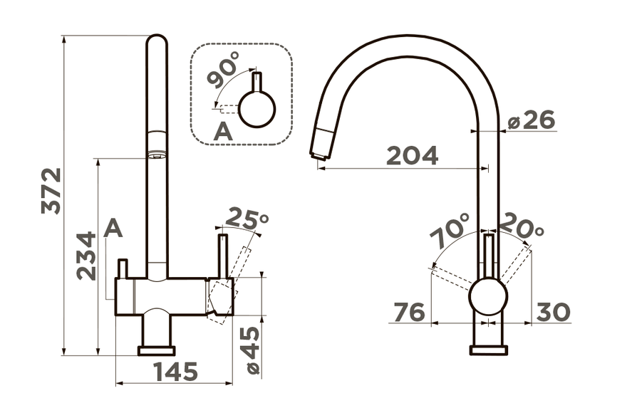 смеситель для кухни, латунь, дополнительный излив для фильтрованной воды, светлое золото