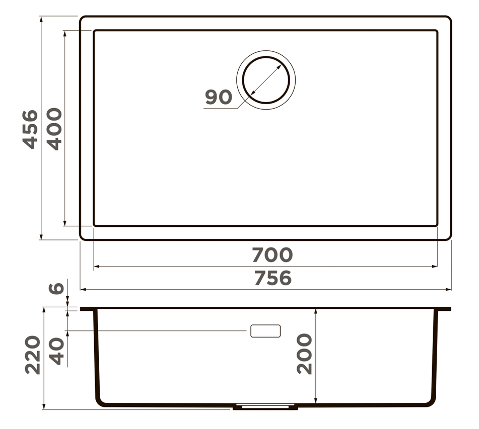 Расстояние от дна до верхней кромки чаши мойки. Оптимальная глубина — 15-18 см. Чем глубже мойка, тем меньше брызг попадет наружу.
