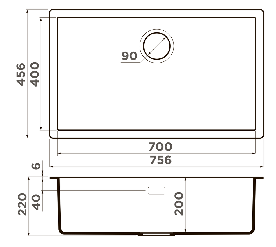 Расстояние от дна до верхней кромки чаши мойки. Оптимальная глубина — 15-18 см. Чем глубже мойка, тем меньше брызг попадет наружу.