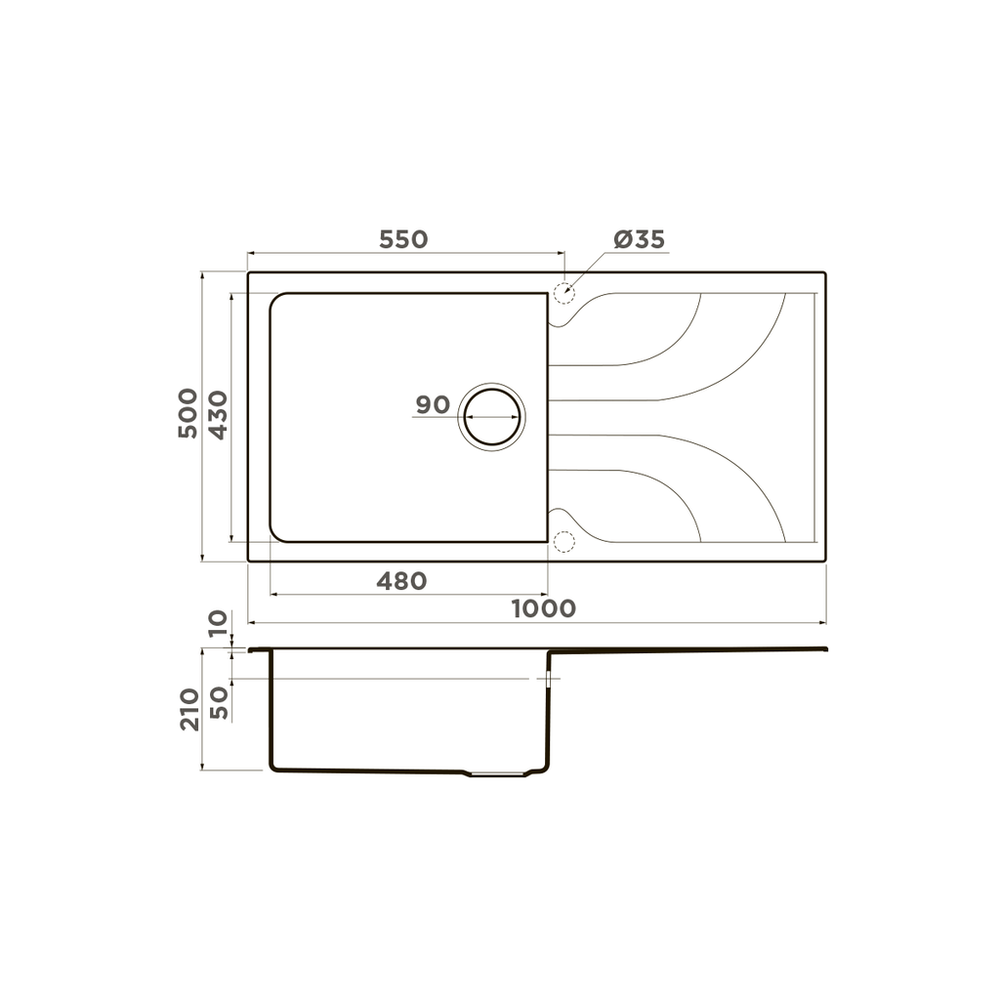 Расстояние от дна до верхней кромки чаши мойки. Оптимальная глубина — 15-18 см. Чем глубже мойка, тем меньше брызг попадет наружу.
