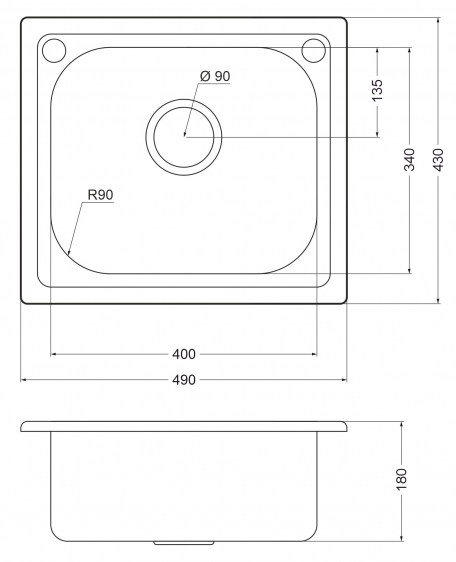 мойка, нержавеющая сталь, 490х430 мм, нержавеющая сталь сатин