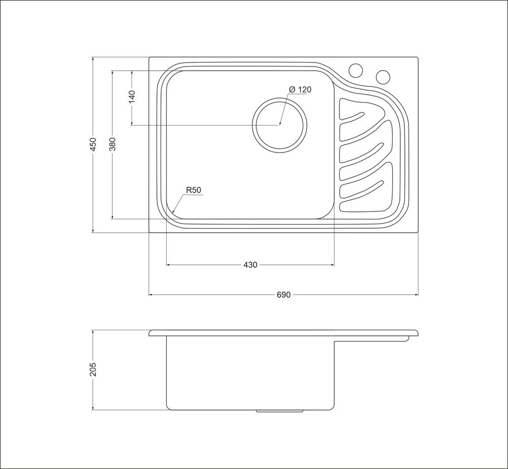 мойка, нержавеющая сталь, 690х450 мм, нержавеющая сталь