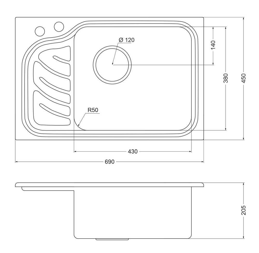 мойка, нержавеющая сталь, 690х450 мм, нержавеющая сталь