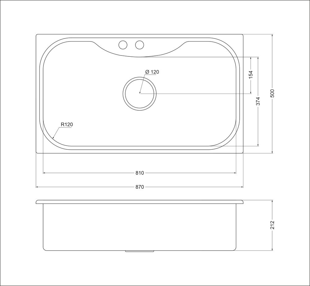 мойка, нержавеющая сталь, 870х500 мм, нержавеющая сталь сатин