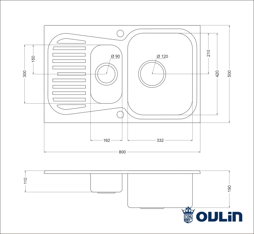 Oulin OL-359S (F&P), мойка, нержавеющая сталь сатин Мойка из нержавеющей стали