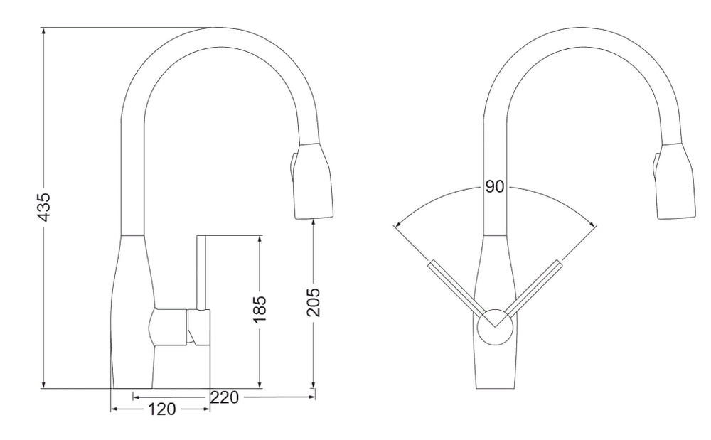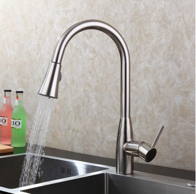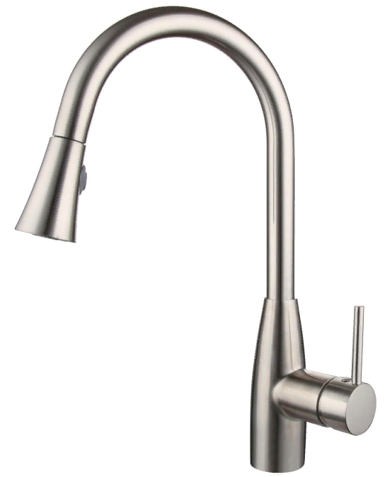 смеситель для кухни, нержавеющая сталь, высокий поворотный выдвижной излив, сатин