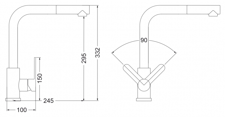 смеситель для кухни, нержавеющая сталь, высокий поворотный излив, сатин