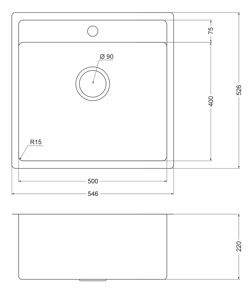 мойка, нержавеющая сталь, 546х526 мм, нержавеющая сталь сатин