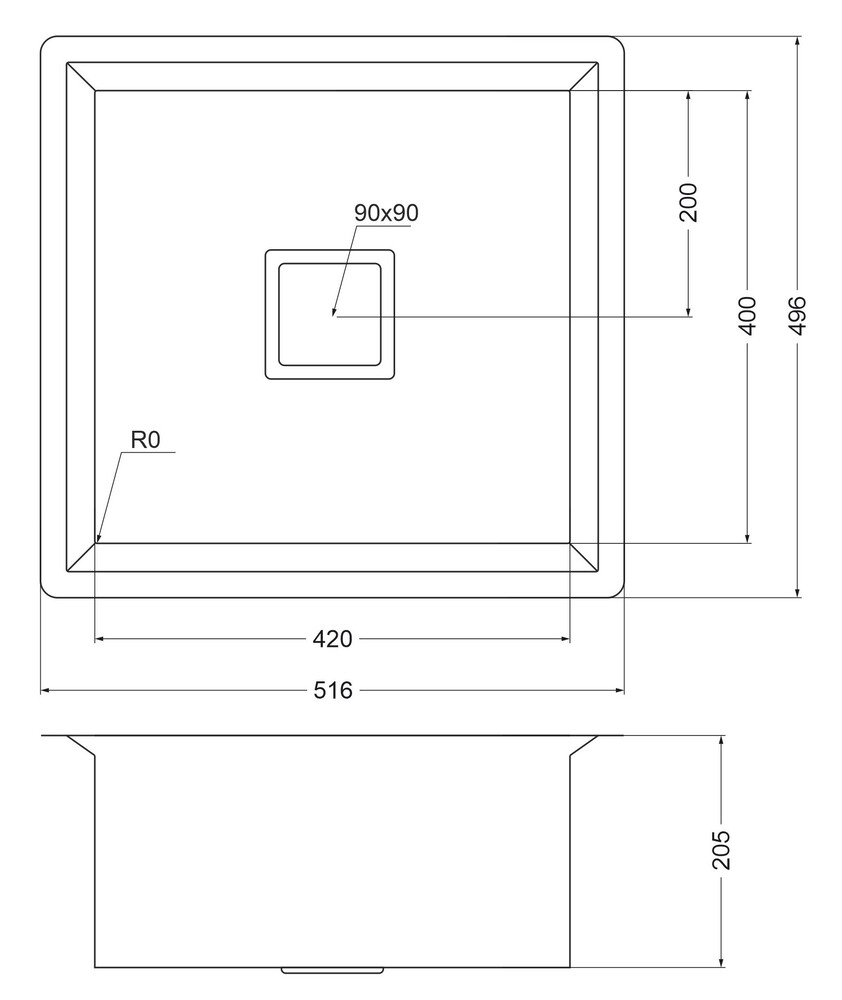 мойка, нержавеющая сталь, 516х496 мм, нержавеющая сталь