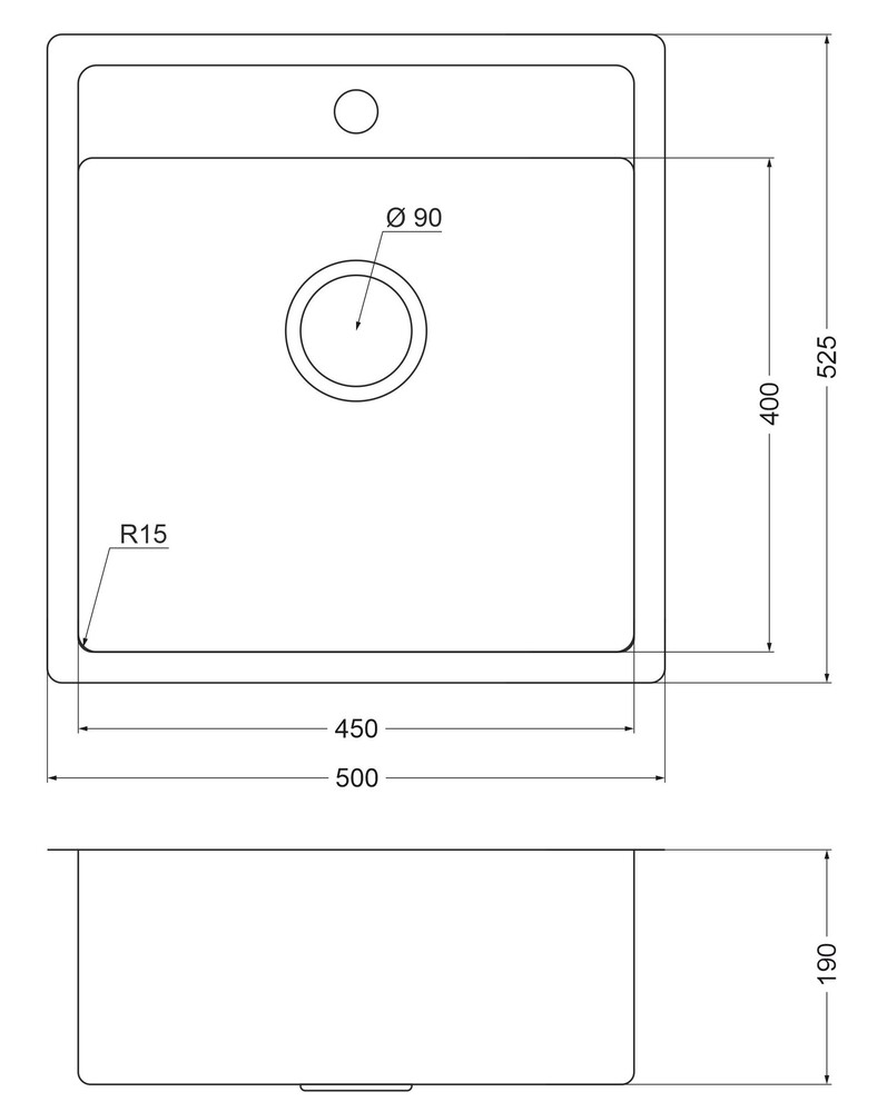 мойка, нержавеющая сталь, 500х525 мм, нержавеющая сталь