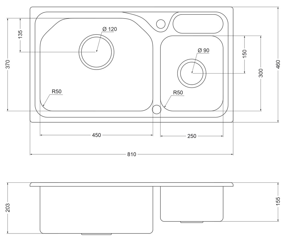 мойка, нержавеющая сталь, 810х460 мм, нержавеющая сталь